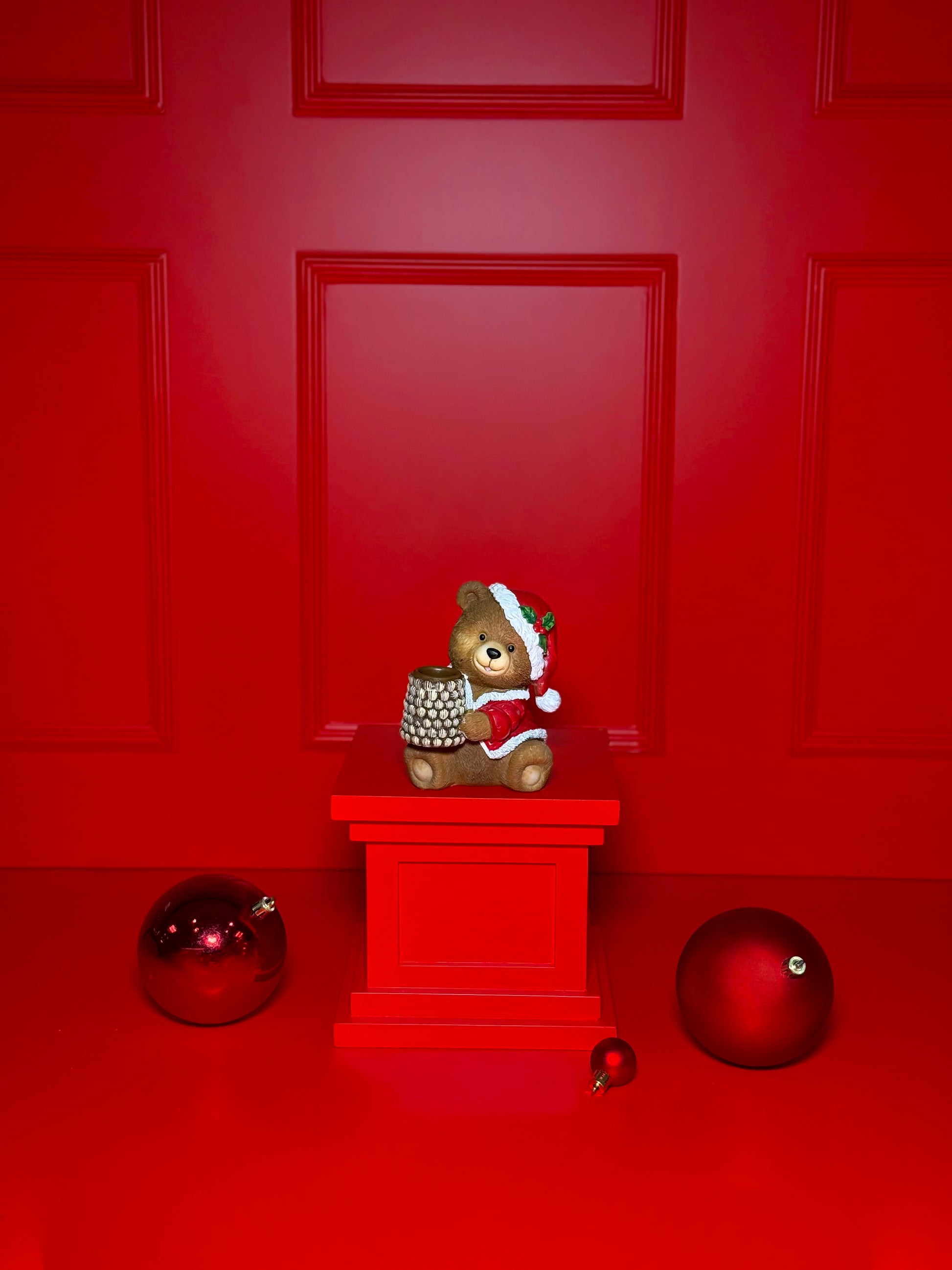 Encante sua decoração de Natal com este candelabro de urso natalino, uma peça que combina tradição e detalhes artesanais inspirado no Natal nova-iorquino.
