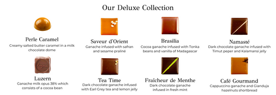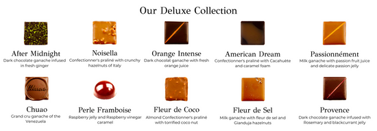 Delicada seleção de chocolates, ganaches e bombons. Receitas originais que revelam os aromas do chocolate. Uma caixa ideal para oferecer ou degustar.