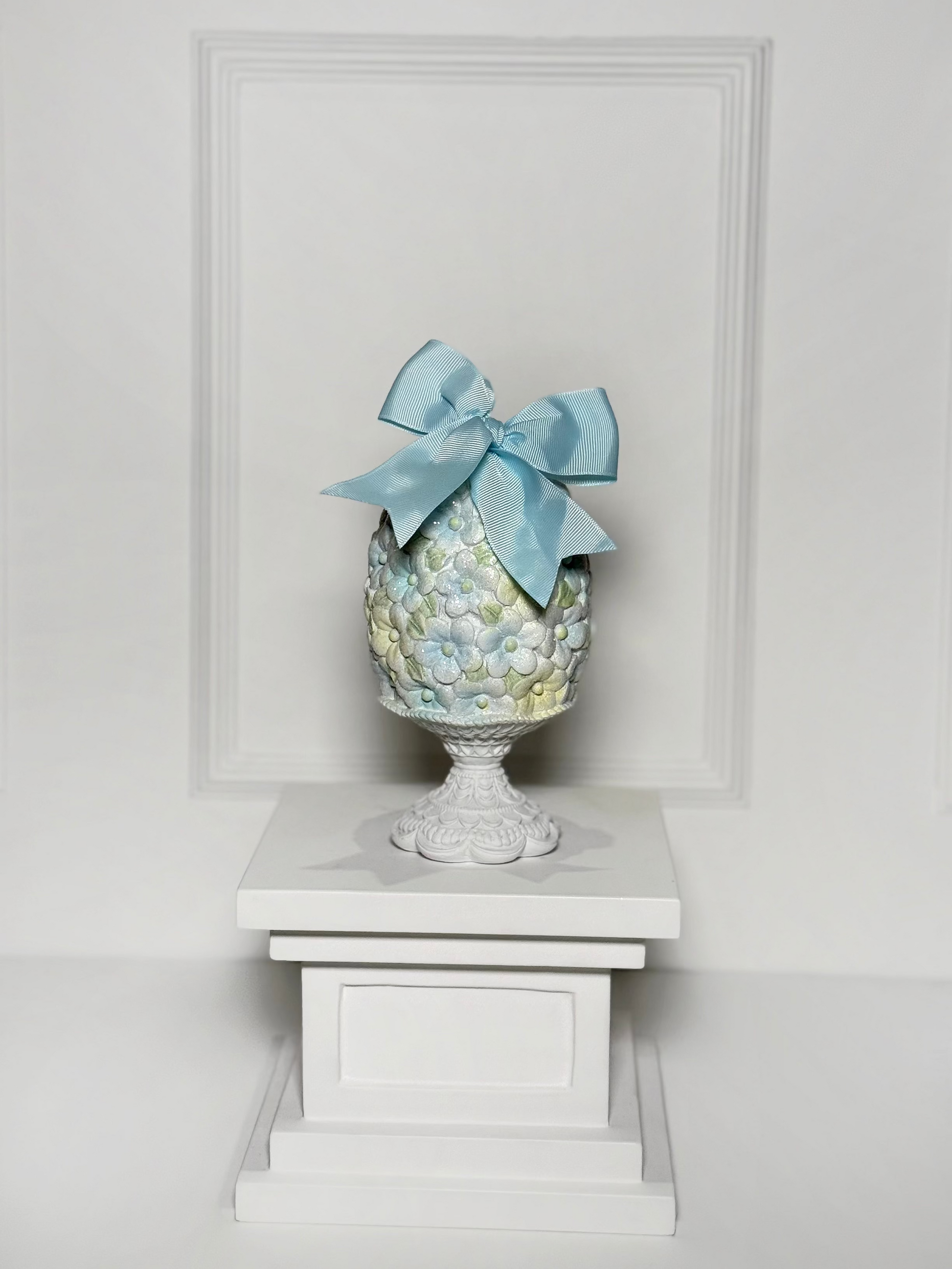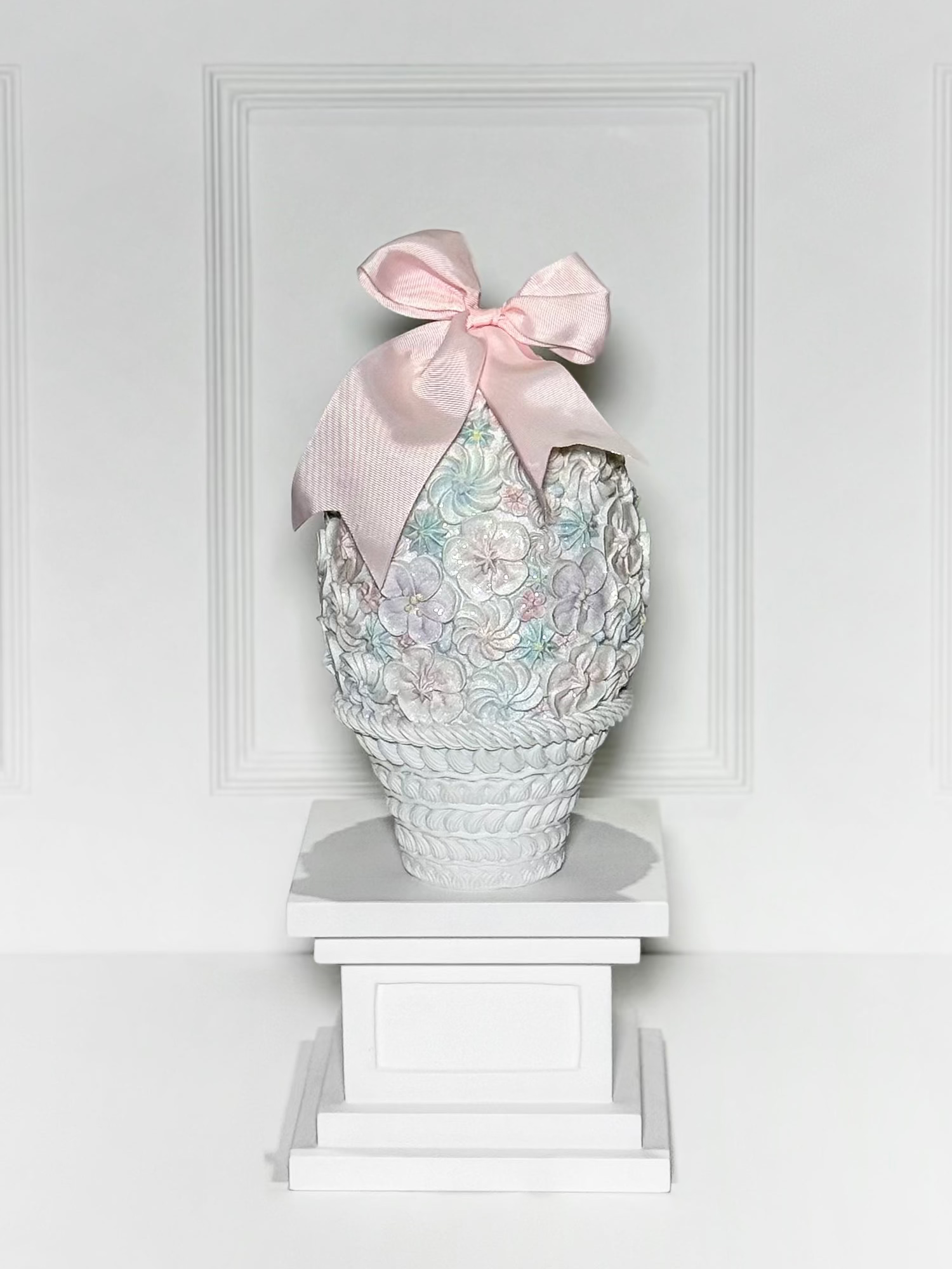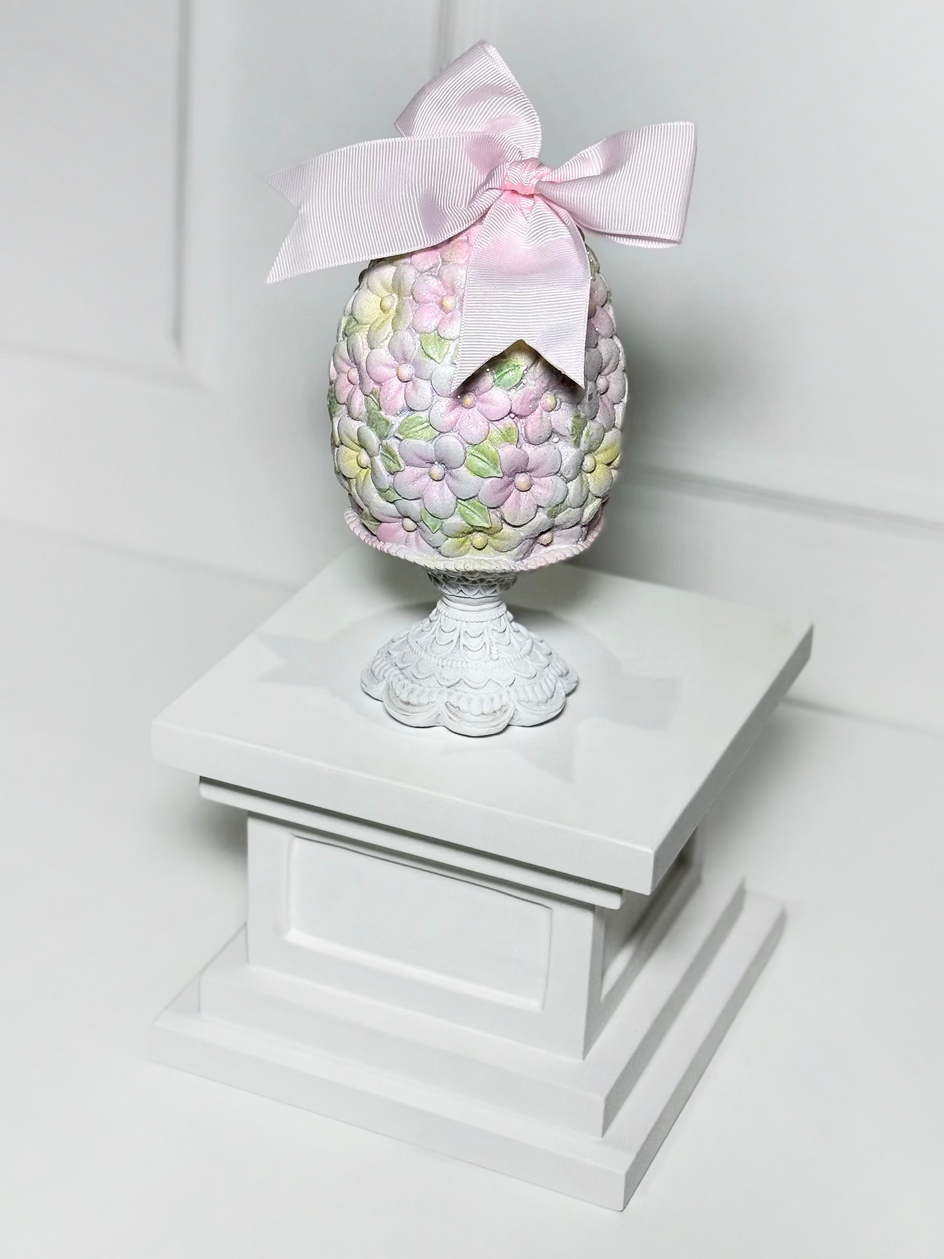 Delicado como a primavera e encantador em cada detalhe, este Ovo Decorativo Floral é uma peça que traduz suavidade e elegância em forma de arte. Revestido por pequenas flores em tons pastel e finalizado com um laço em lilás, ele transmite leveza, romantismo e um charme atemporal.