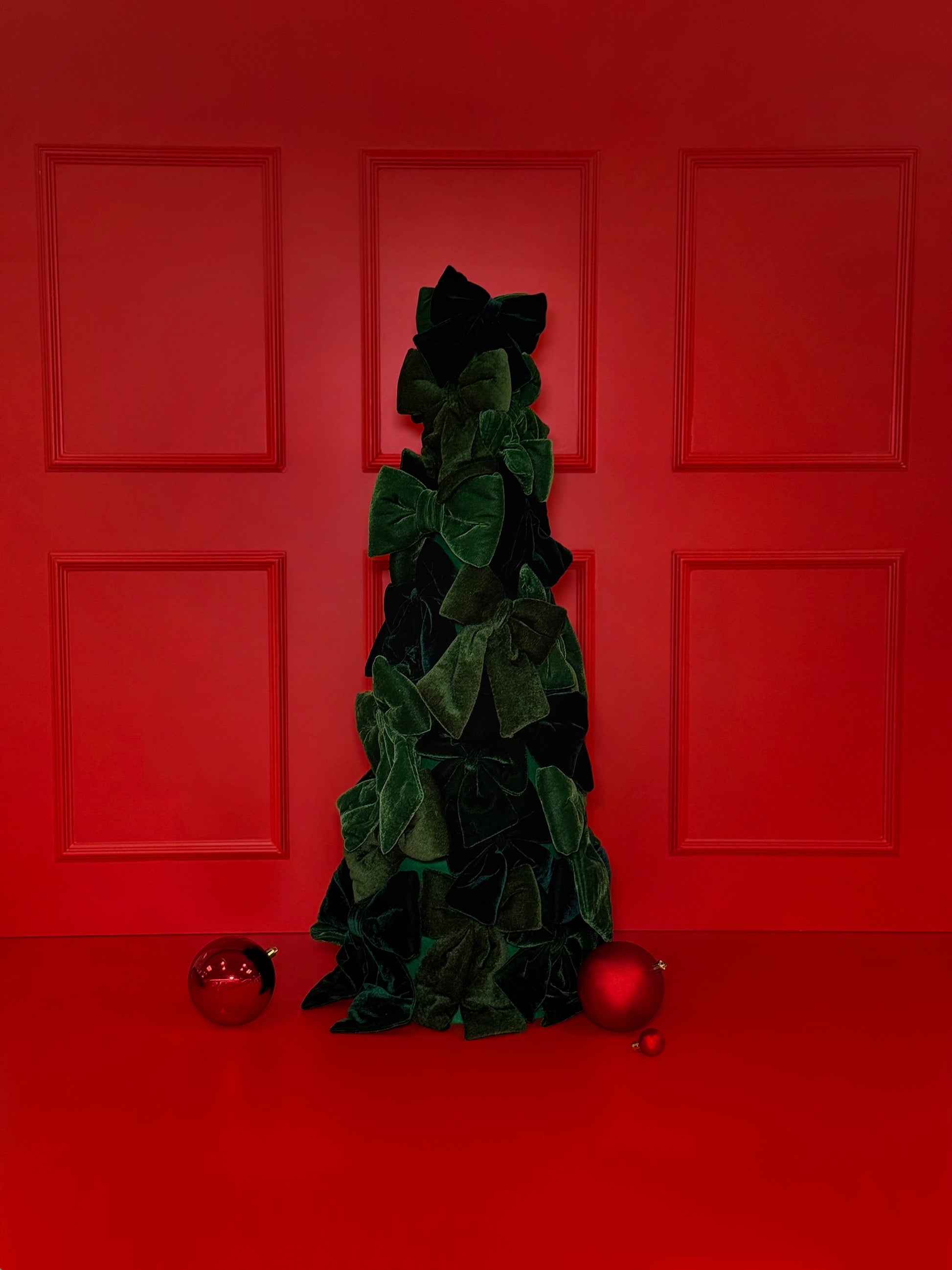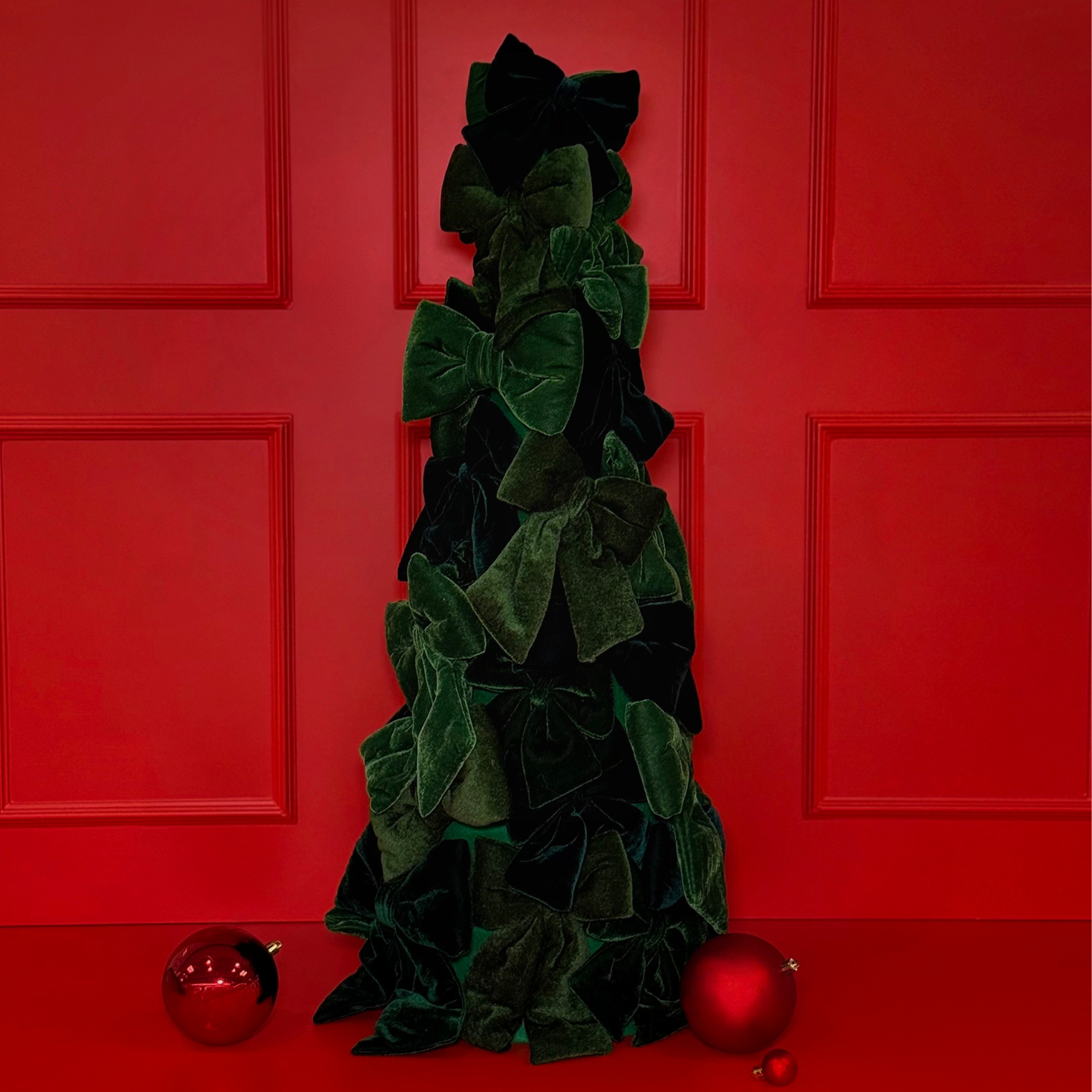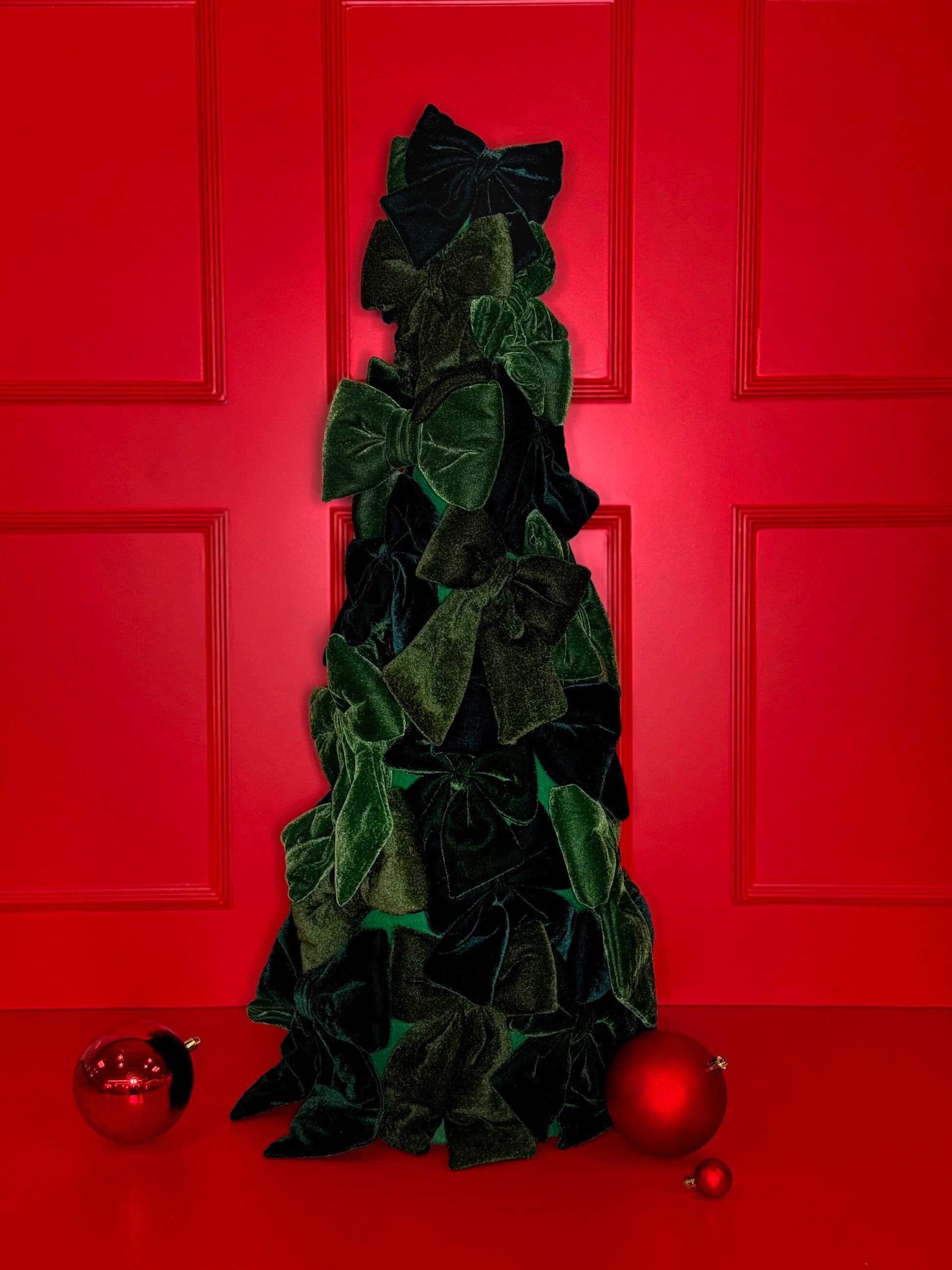 Transforme sua decoração de Natal com o charme refinado desta topiaria de laços em veludo, uma peça que combina textura, elegância e o espírito festivo em cada detalhe.